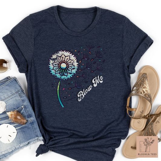 Blow Me T-Shirt with Whimsical Dandelion Wishes